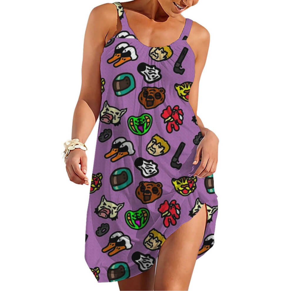 (Hotline Miami Pattern_14556) Women's Summer Dresses Casual Sleeveless Elastic Skirt with Straps Sundresses Vacation Beach Cover Up Dress Tshirt- Styl