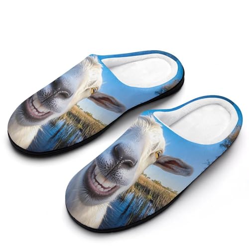 peiyeety A Goat Smiles at The Camera House Slippers for Women Warm Fleece Home Shoes Winter Indoor Outdoor