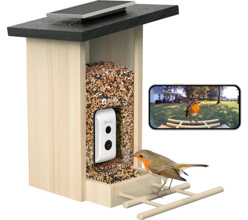 Birdfy Ebony Lite Smart Bird House with Camera and Solar Panel, Brown