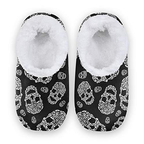 Ksajwzf Human Skulls Stars Slippers for Women Men, Day Of The Dead Skull Womens House Slippers Indoor Slipper Socks House Shoes Bedroom Travel Shoe