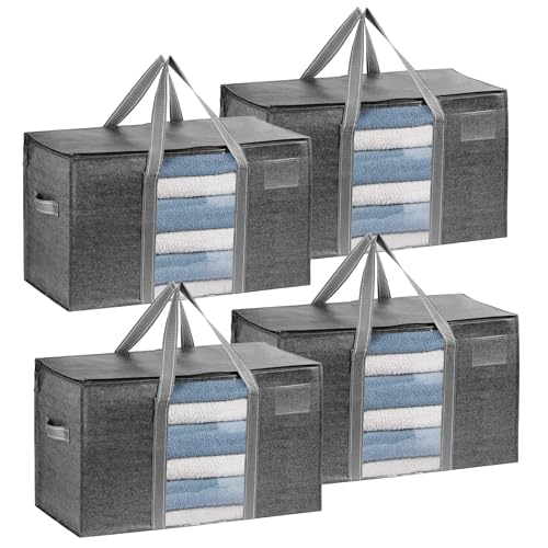 Lifewit 4 Pack Clothes Storage Bags, Foldable Storage Box Moving Bags Wardrobe Storage Organiser Packing Boxes for Moving House with Clear Window for Clothing Bedding Blankets, Grey