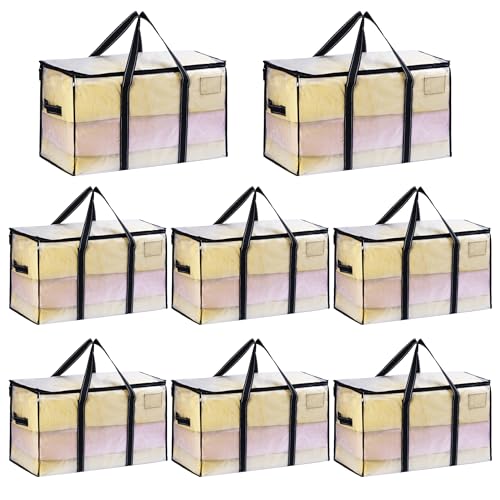VENO 8 Pack Extra Large Moving Bags,Clothes Storage Bags for Blankets Bedding,Moving House Essentials,Waterproof Underbed Storage Packing Boxes,Laundry Bags Organiser (Clear, 8 Pack)