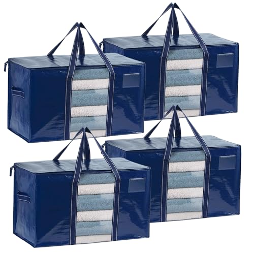 VENO 4 Pack Heavy Duty Moving Bags for Clothes,Extra Large Moving House Essentials,Underbed Storage Packing Boxes for Duvet,Waterproof Laundry Bags Organiser (Blue, 4 Pack)