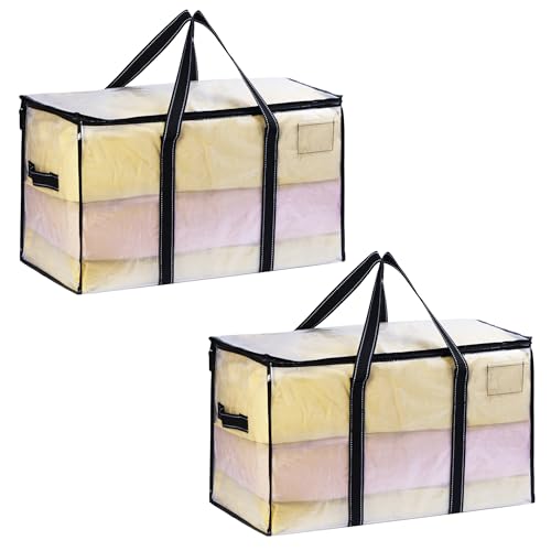 VENO 2 Pack Extra Large Moving Bags,Clothes Storage Bags for Blankets Bedding,Moving House Essentials,Waterproof Underbed Storage Packing Boxes,Laundry Bags Organiser (Clear, 2 Pack)