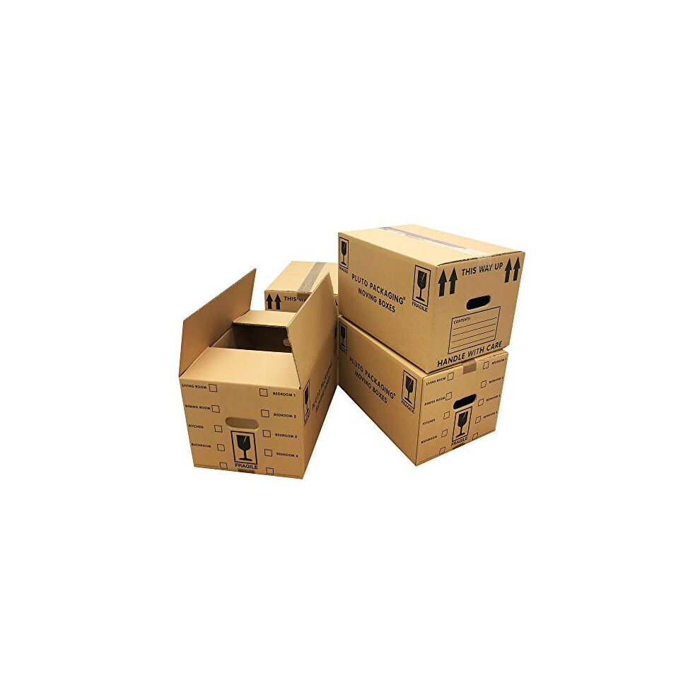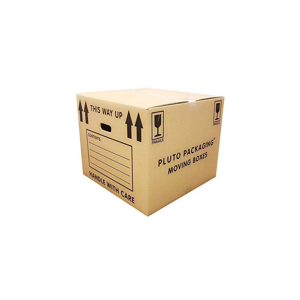 PlutoPackaging 10 Large Strong Cardboard Packing Moving House Boxes 47cm x 31.5cm x 25.5cm with Carry Handles and Room List