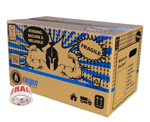 Trojan 20 Pack Large Double Wall House Moving Boxes 51 x 29 x 29cm Free Roll of Fragile Tape, 43L Storage Convenient Hand Holes Room List for Home Removals Durable Packing Storage Boxes, Recyclable