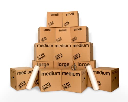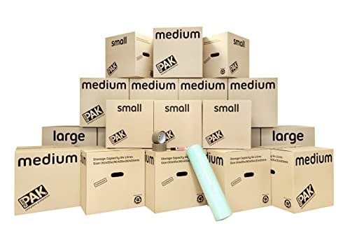 StorePAK House Moving Kit - 20 Storage/Moving Boxes with Handles, Bubble Wrap, Tape & Marker Pen - 100% Recyclable - SMALL, MEDIUM & LARGE