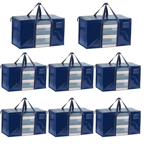 VENO 8 Pack Heavy Duty Moving Bags for Clothes,Extra Large Moving House Essentials,Underbed Storage Packing Boxes for Duvet,Waterproof Laundry Bags Organiser (Blue, 8 Pack)