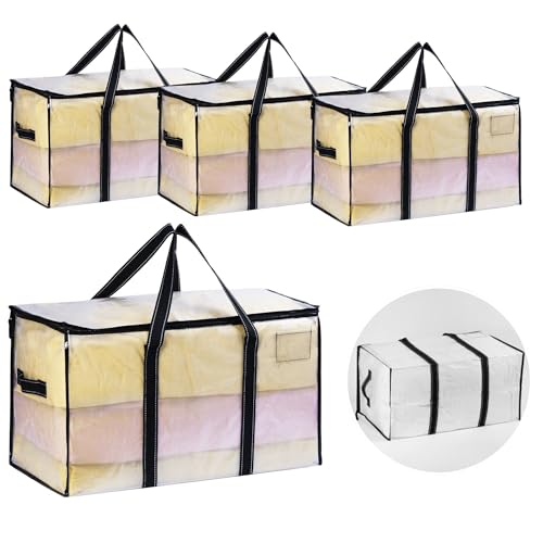VENO 4 Pack Extra Large Moving Bags,Clothes Storage Bags for Blankets Bedding,Moving House Essentials,Waterproof Underbed Storage Packing Boxes,Laundry Bags Organiser (Clear, 4 Pack)