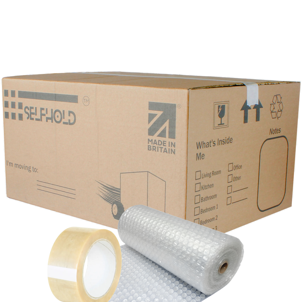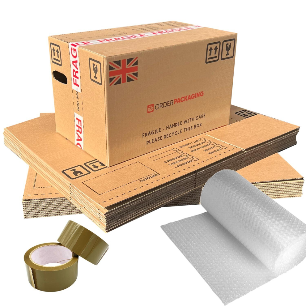 20 Extra Large Strong Cardboard House Moving Packing Boxes Kit with 60 Metres Wide Bubblewrap and Tape