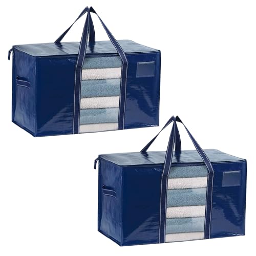 VENO 2 Pack Heavy Duty Moving Bags for Clothes,Extra Large Moving House Essentials,Underbed Storage Packing Boxes for Duvet,Waterproof Laundry Bags Organiser (Blue, 2 Pack)
