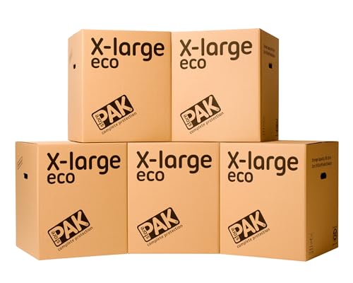 StorePAK Eco Boxes with Carry Handles - Suitable for Storage, Shipping, Packing & Moving House - 116 Litres - H 55cm x W 46cm x D 46cm - 100% Recycled & Recyclable - X-Large Pack of 5