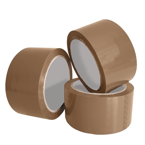 ARVO Brown Packing Tape 3 Rolls with Low Noise (48mm x 60m) - Durable Parcel Sealing Tape for Packing Boxes, Secure Packaging for Moving House