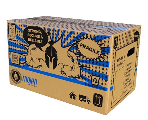 Trojan Pack of 10 Large Strong Double Wall House Moving Boxes 51 x 29 x 29cm 43L Storage - With Hand Holes & Room List - Home Removal Packing Storage Box Built for Strength & Durability Recyclable