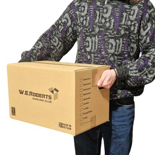 W.E. Roberts Moving Boxes 5 STRONG Cardboard House Moving packing boxes for moving house - Removal Packing boxes Large Cardboard Boxes with handholes and Room List