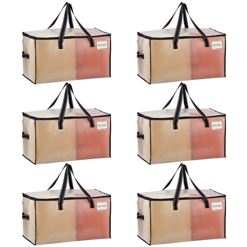 VENO 6 Pack Extra Large Moving Bags,Clothes Storage Bags for Blankets Bedding,Moving House Essentials,Waterproof Underbed Storage Packing Boxes,Laundry Bags Organiser(Gray,6 Pack)