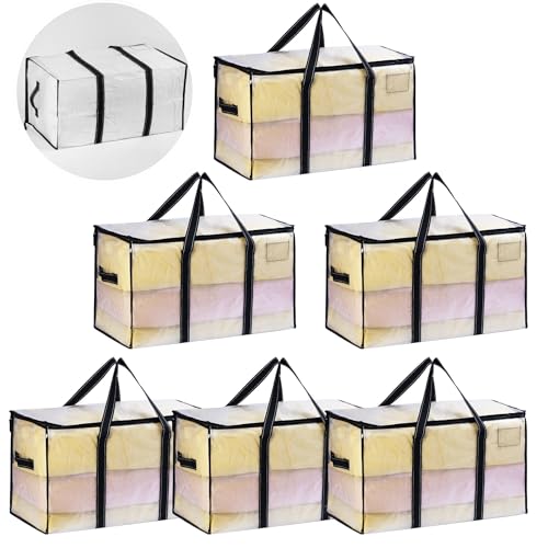 VENO 6 Pack Extra Large Moving Bags,Clothes Storage Bags for Blankets Bedding,Moving House Essentials,Waterproof Underbed Storage Packing Boxes,Laundry Bags Organiser (Clear, 6 Pack)