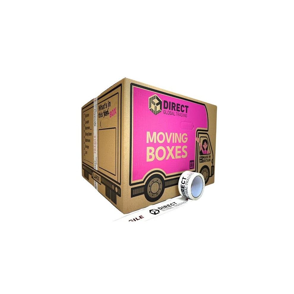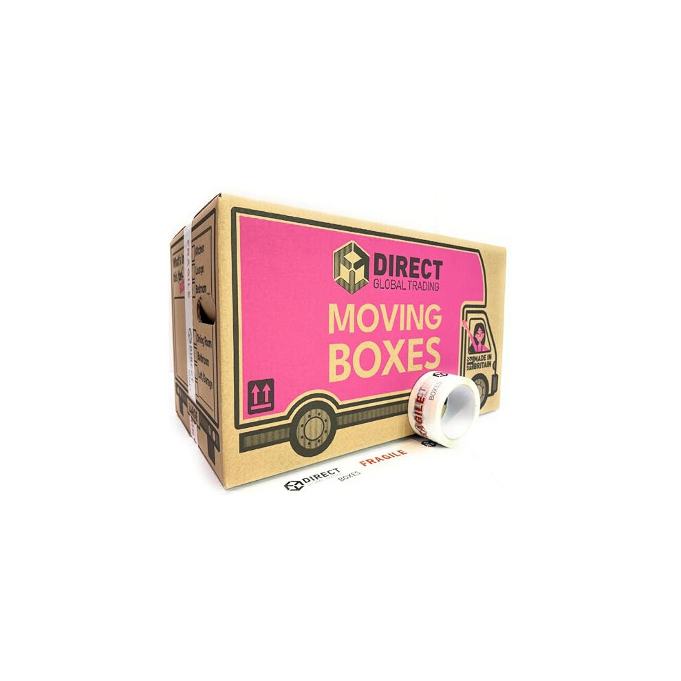 5 Strong Extra Large Cardboard Storage Packing Moving House Boxes with Carry Handles and Room List 66 Metres Fragile Tape 52cm x 52cm x 40cm