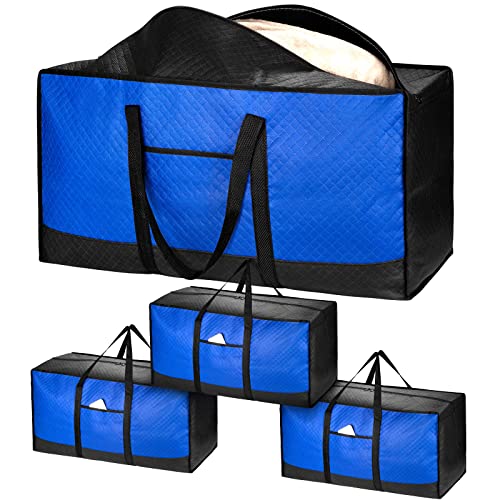 4 Pack 120L Extra Large Storage Box with Lid for Moving House, Strong Moving Boxes Bags with Zips for Clothes, Duvet, Underbed, Travelling, Packing Box Laundry Bags