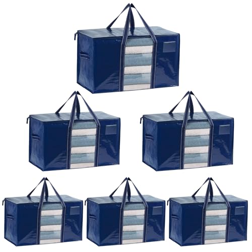 VENO 6 Pack Extra Large Moving Bags,Clothes Storage Bags for Blankets Bedding,Moving House Essentials,Waterproof Underbed Storage Packing Boxes,Laundry Bags Organiser (Blue, 6 Pack)