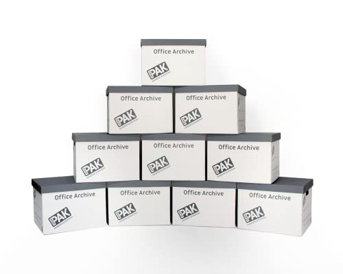 StorePAK Office Archive/Storage Cardboard Boxes & Lids Pack of 10. Good for Office, Home Storage & Moving House white & Grey