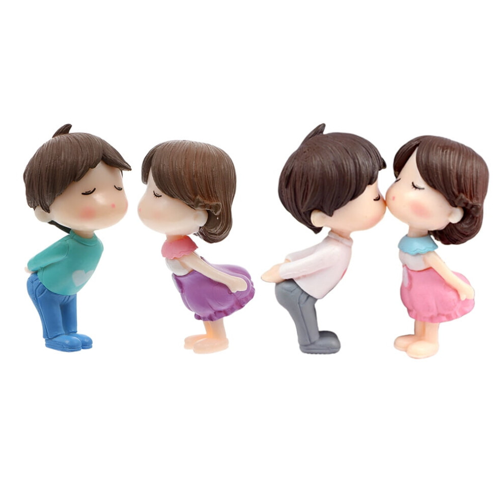 2 Sets Couple Ornaments Cute Doll House Accessory Decor Earth Tones Cake Lovers Pvc Plastic