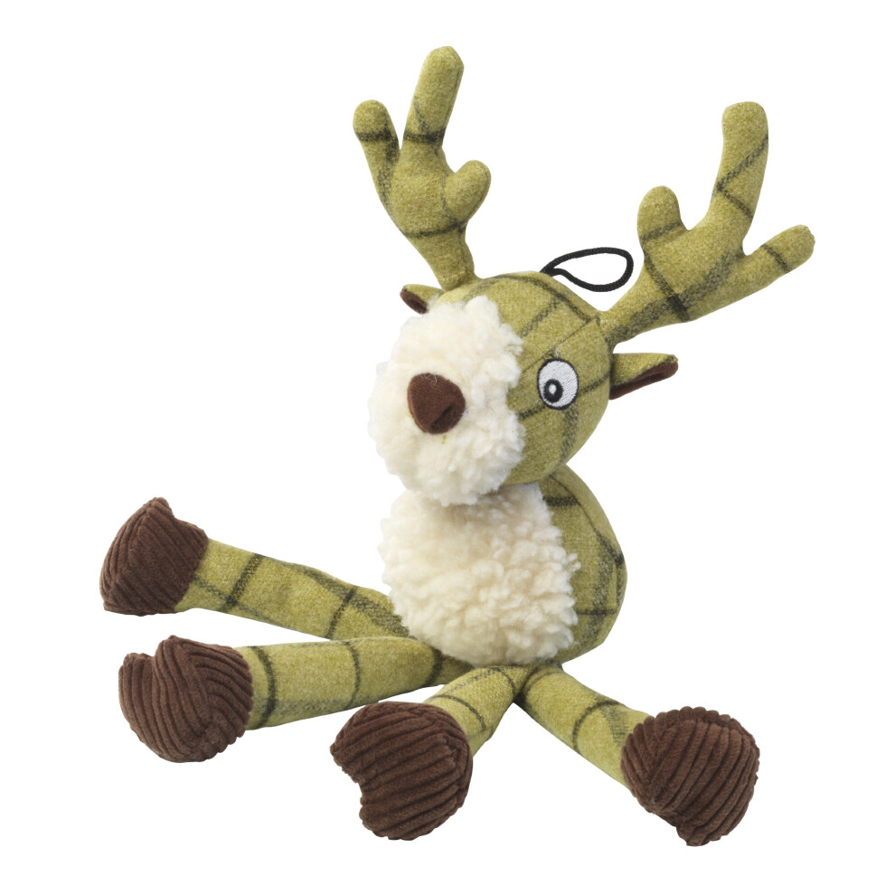 House of Paws Tweed Plush Long Legs Stag Dog Toy, Green