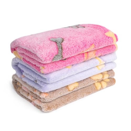 Flying Paws 3 Pieces Pet Blankets, Dog Blankets, Washable Medium Fluffy Blanket Soft and Warm for Cats Dogs Cute Paw Bone House Print Fuzzy Flannel Bed Cover 76 x 52 cm