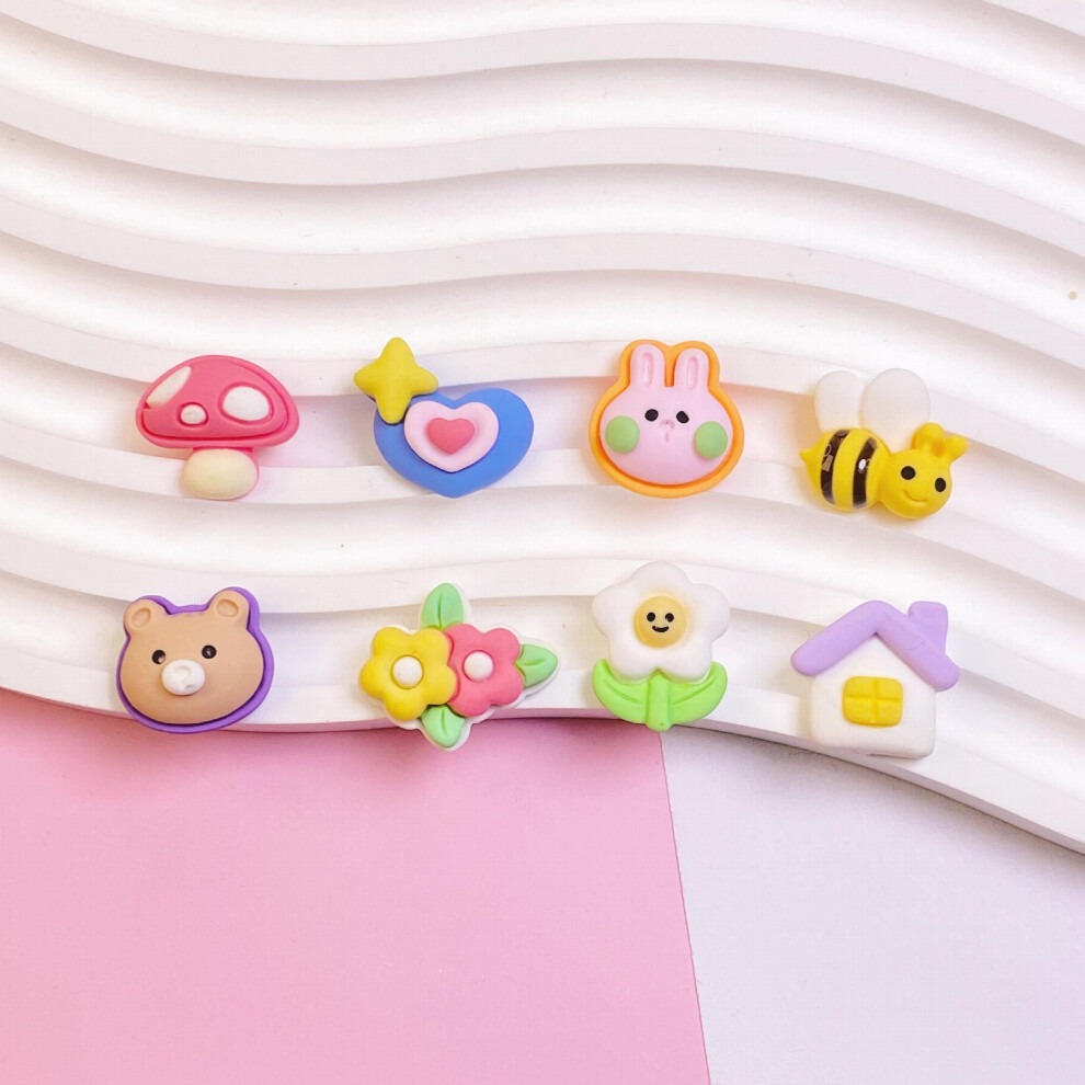 8pcs set Colorful Cartoon Animal Mushroom House Flat Back Resin Charms DIY Hair Clips Phone Cases Photo Frame Embellishments Wall Decorations DIY Scra