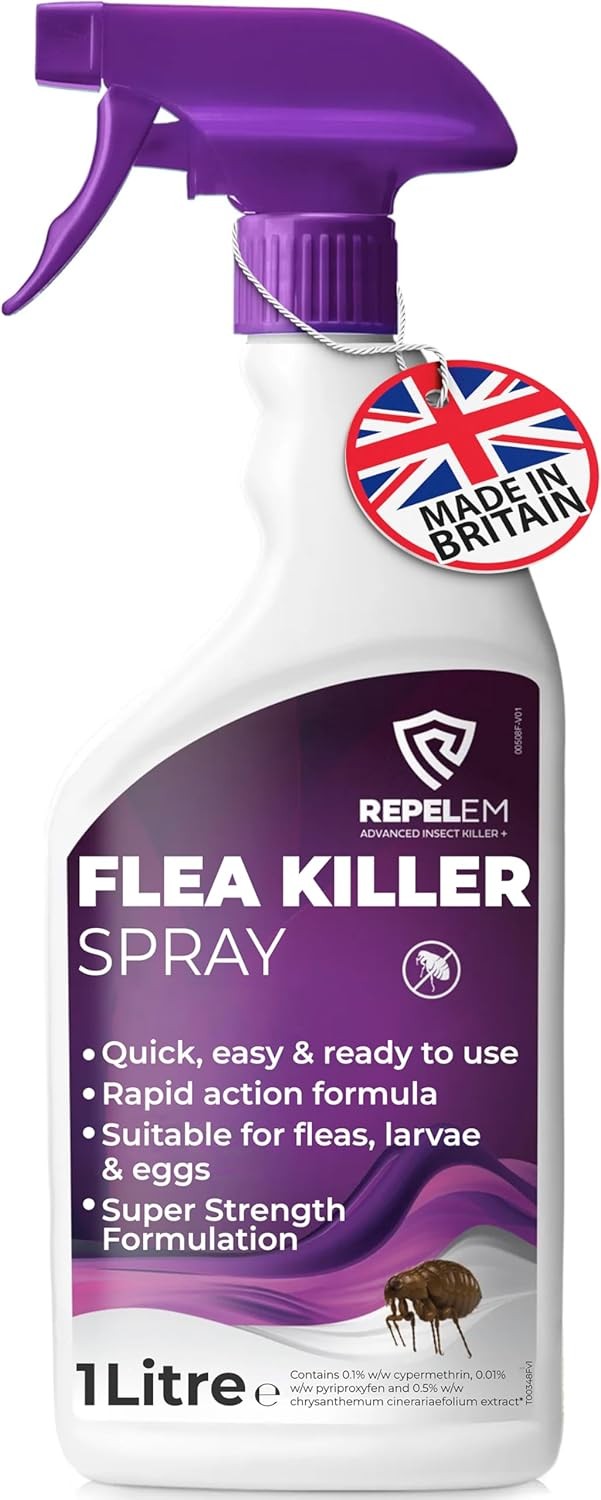 REPELEM Flea Spray for The Home - Professional Strength, Household Treatment, Killer for Home, Kills Fleas, Larvae & Eggs (1L Flea Spray)