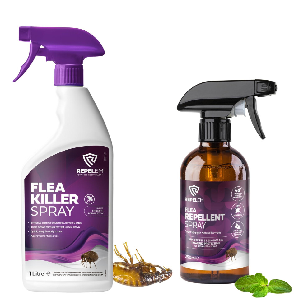 REPELEM Flea Treatment Kit 1L Flea Spray for The Home with 250ml Natural Flea Repellent Professional Strength Flea Treatment for House Household F