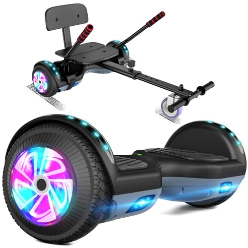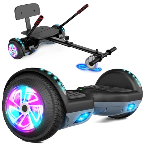 EVERCROSS Hover Board Kids, Hoverboards with Seat Attachment Hoverkart, 6.5" Self Balancing Scooters, Hoverboards Bluetooth with LED Lights, Ideal Hover Board for Kids Teenagers Adults
