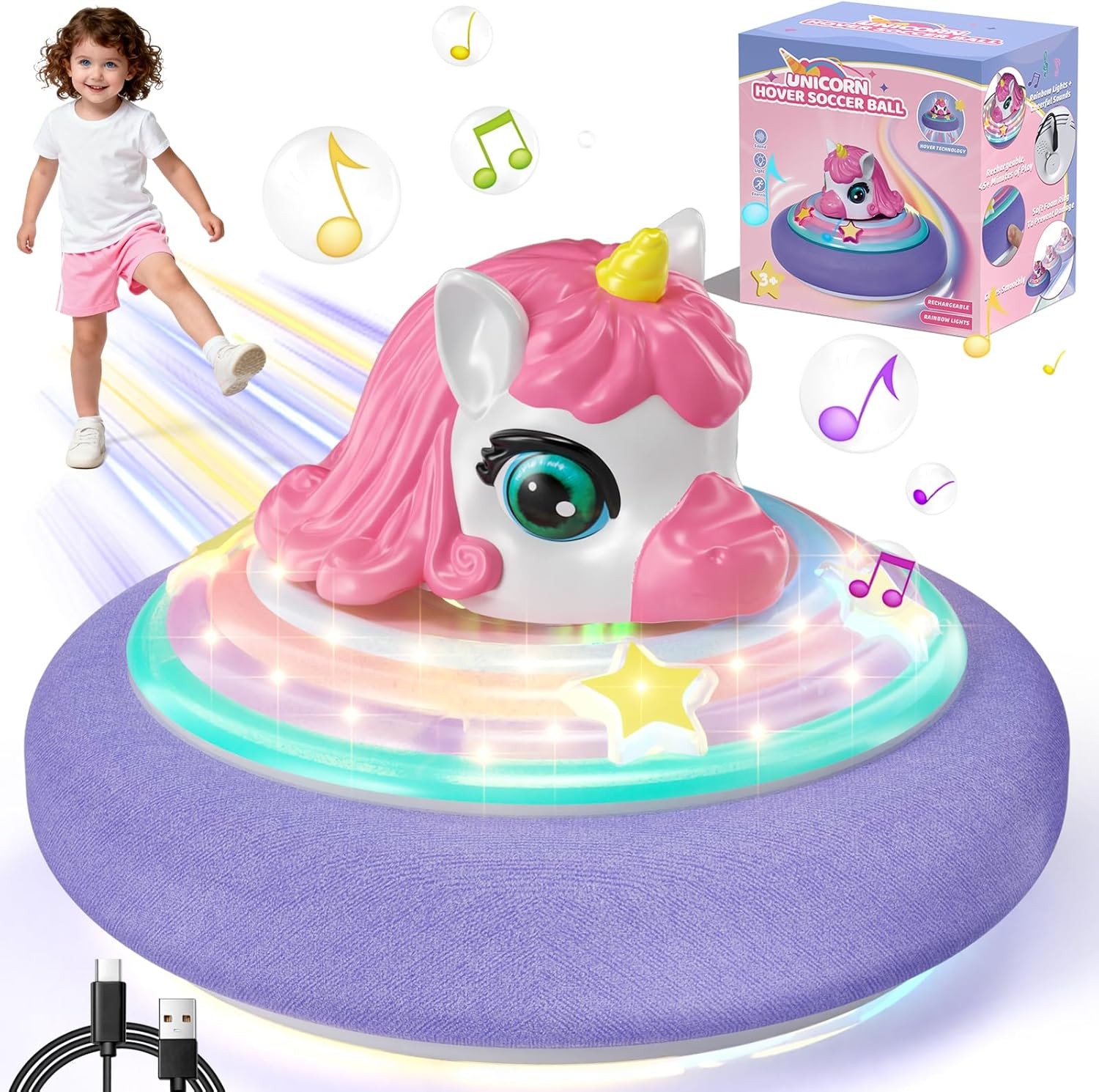 Unicorn Hover Football for Girls, Air Power Soccer Ball with LED Lights & Recha