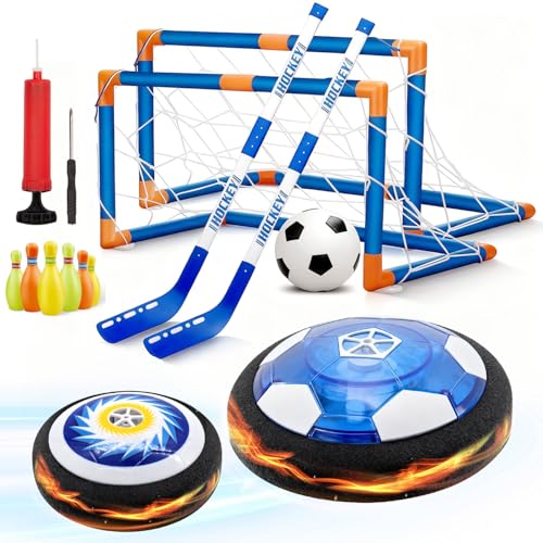 Hover Hockey Football Set - 3-in-1 Boys Toys Rechargeable LED Hover Football with 2 Goals Foam Bumpers Hover Soccer Ball Air Floating Football Gifts for Boys Girls Kids 3 4 5 6 7 8 9-12