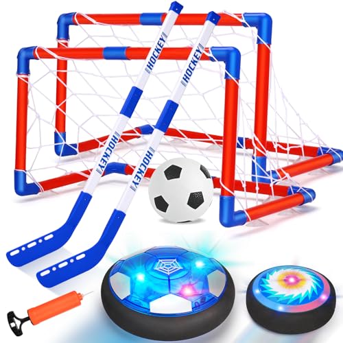Magicoco 3 in1 Hover Hockey Football Toys Set, Air Floating USB Rechargeable Indoor & Outdoor Hover Sport Games w/2 Goals, LED Shining Light & Bumper, for Age 6-12 Boys Girls