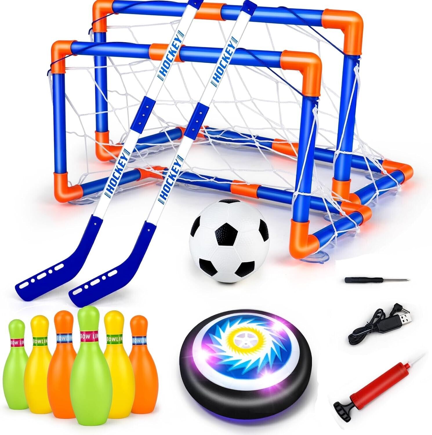 3 in 1 Hover Football Hockey Set for Kids with 2 Goals, LED Hover Soccer Ball Air Hockey Floating Football, Kids Toddler Garden Indoor Outdoor Football Games Gifts for Boys Girls 3-12 Year Old Toys
