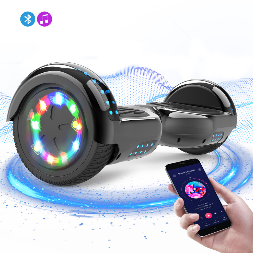 (Black) Hoverboard 6.5'' Smart Self-Balancing Scooter with Bluetooth & LED Lights Best Gifts