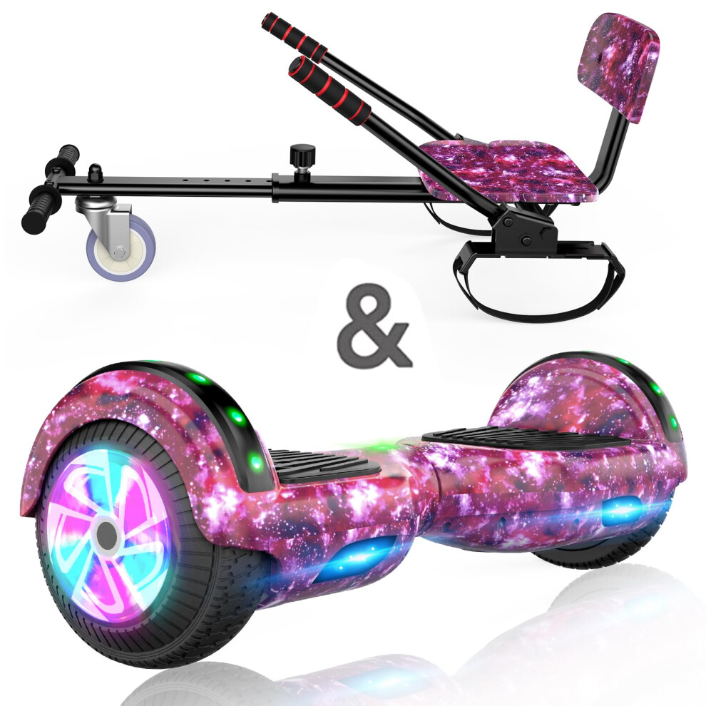 (Purple Pink Galaxy) Hoverboard Go Kart Adjustable Hoverkart Seat for Electric Self Balancing Scooters Fit Hover Board Sizes 6.5", 8" And 10" Hoverkar