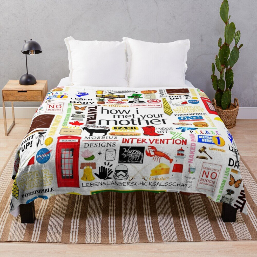 Fleece Throw Blanket How i Met Your Mother Collage Poster Iconographic - Infographic for Sofa Couch Kids 60 x 50 Inches
