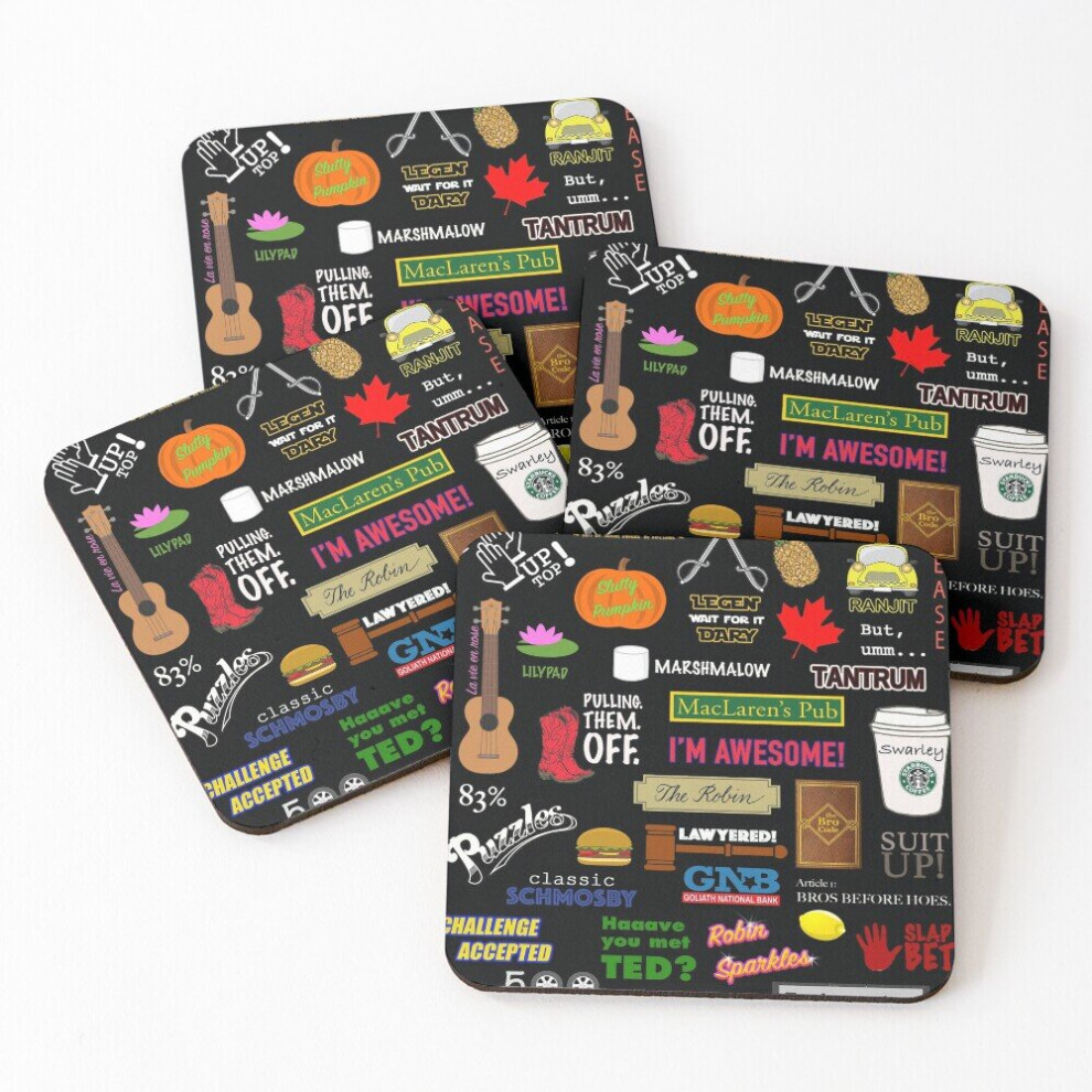 Leather Coasters How I Met Your Mother HIMYM TV Show Collage Set of 4 / 4 x 4 inch