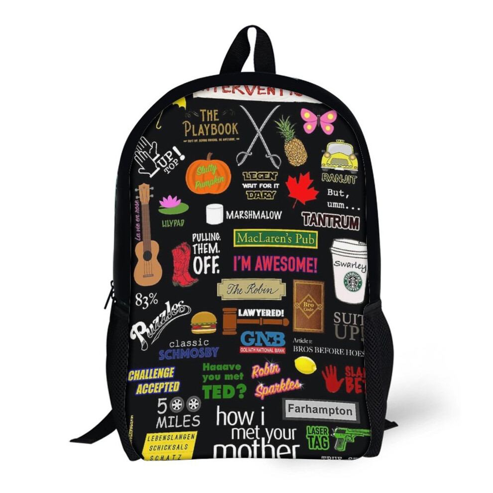 Backpacks How I Met Your Mother HIMYM TV Show Collage 17inch School Bag