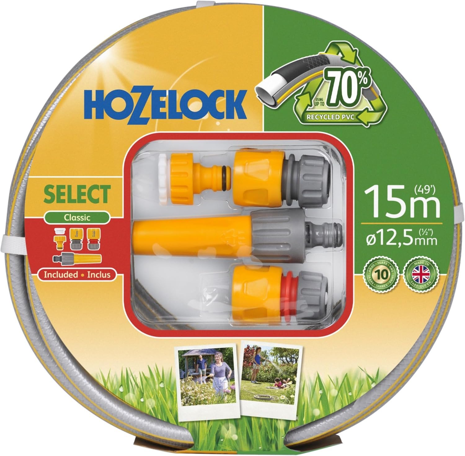 HOZELOCK - Select Hose 12.5mm x 15m Starter Set, Up To 70% Recycled PVC, Braided Reinforcement, Hard-Wearing Garden Hose, Quality and Durability, Fittings Included [100-100-581]