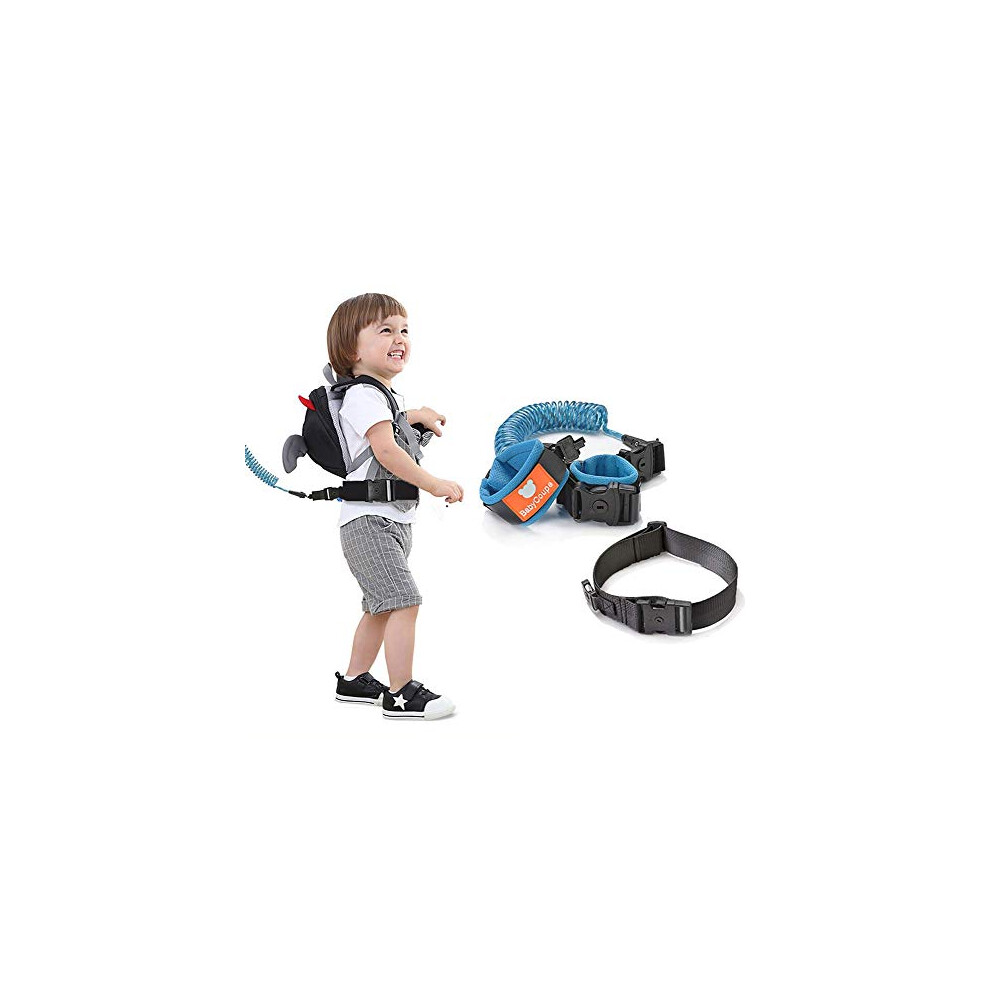 Hurinan Anti Lost Wrist Link Belt, 2.5M Belts and Wristband 2 in 1 Combination Kit, Adjustable Children Wrist Rope With Lock, Safety Harness for Kids, Baby Harness for Walking(Blue+Black+2.5Meters)