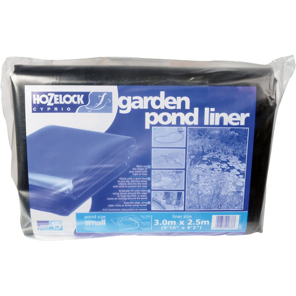 HOZELOCK - Pond Liner Size S (3m x 2,5m) : Ideal for Small Ponds and Koi Pools, Robust and Durable Liner [3461T0155], Black