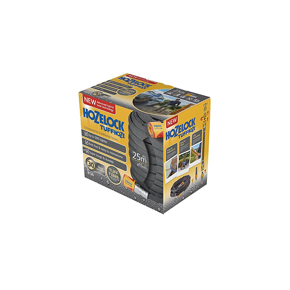 HOZELOCK - Hybrid Watering Hose Tuffhoze 25 m : Extremely Flexible, Tuff-Fibre Woven Technology, Suitable for High-pressure Cleaners (40 bar), Durable