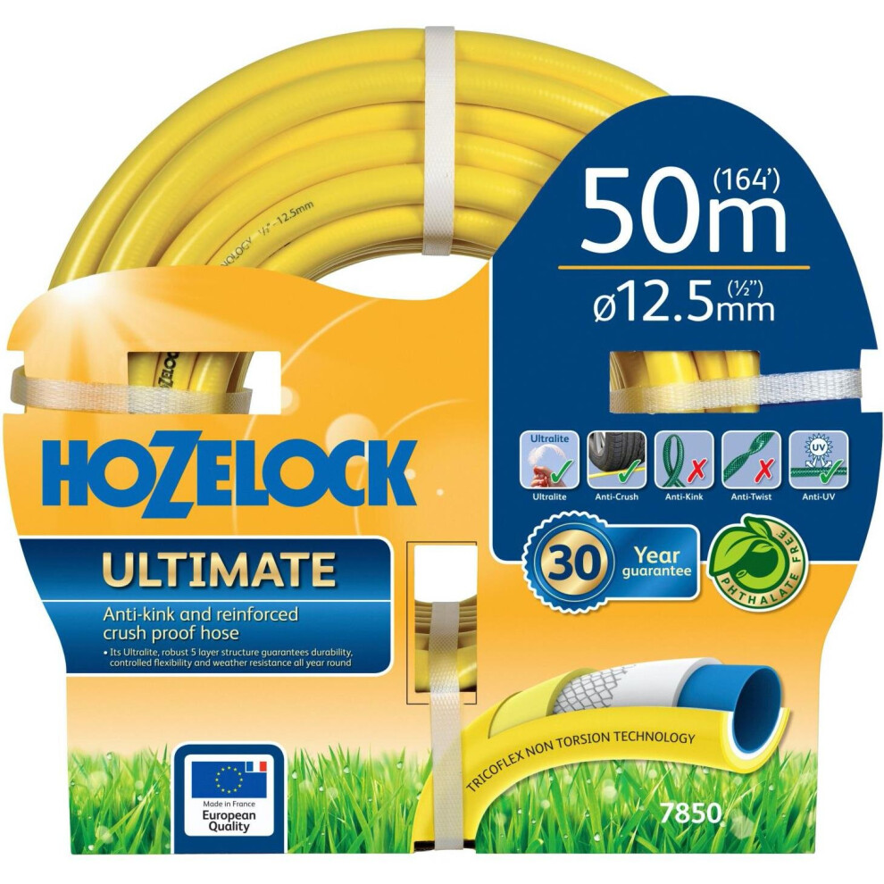 HOZELOCK - Ultimate Hose 12.5mm x 50m, Up To 70% Recycled PVC, Ultra-Light and Flexible, Re-Enforced PVC Layering, Anti-Twist and Anti-Crush Technology [7850P0000], Yellow