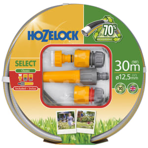 HOZELOCK - Select Hose 12.5mm x 30m Set, Up to 70% Recycled PVC, Braided Reinforcement, Hard-Wearing Garden Hose, Quality and Durability, Weather-Proof with UV and Frost Protection [100-100-577]