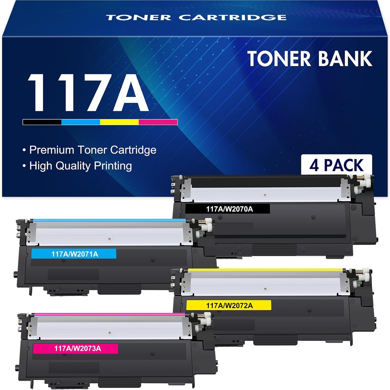 117A Toner Cartridge 4 Pack: Compatible for HP 117A W2070A for Color Laser MFP