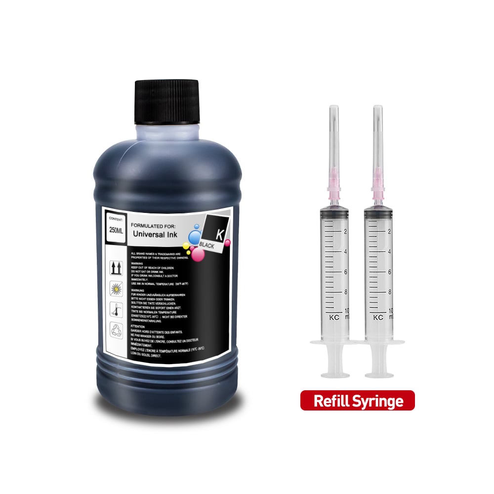 250ML Universal Ink Dye Refill Kit For Canon HP Epson Cartridge 301 302 304 305 664 604 CISS Ecltank 104 Compatible All Printer
