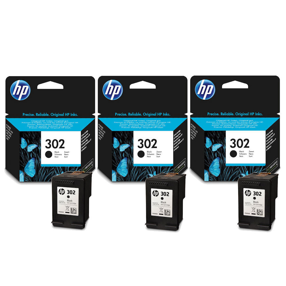 3x HP 302 Black Genuine Ink Cartridges For DeskJet 3638 Printer P/N F6U66AE